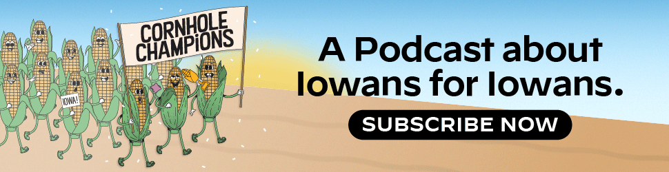 Cornhole Champions is a weekly podcast powered by Iowa Starting Line. It’s produced by me and edited by Rebecca Steinberg—who is absolutely crushing her first week with us. Our music is by Avery Mossman and show art by Desirée Tapia. We are a proud member of the Iowa Writers Collaborative.